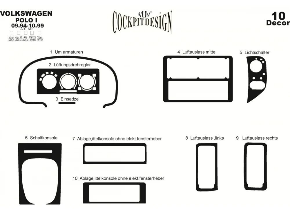 Накладки на панель (1994-1999) Алюміній Volkswagen Volkswagen Polo 1994-2001 рр.Trend Tuning – це ваш надійний партнер у світі автотюнінгу та аксесуарів! Ми пропонуємо широкий асортимент високоякісних товарів для тих, хто прагне зробити свій автомобіль унікальним, стильним і функціональним. У нашому магазині ви знайдете все необхідне: від аеродинамічних обвісів, спортивних вихлопних систем і колісних дисків до внутрішніх аксесуарів, LED-освітлення та електроніки для підвищення комфорту та продуктивності.