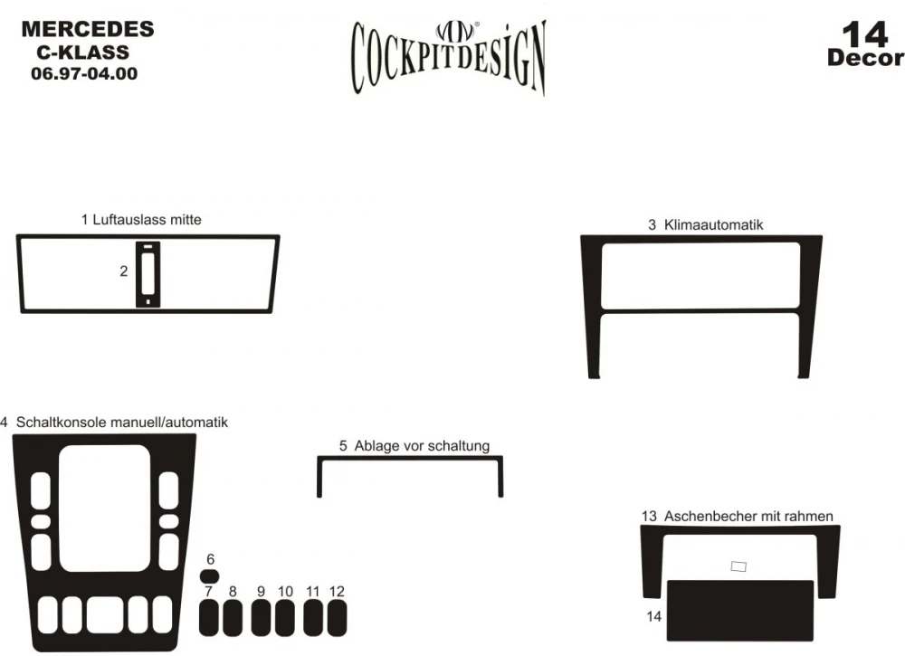 Накладки на панель (1997-2000) Дерево Mercedes Mercedes C-class W202 1993-2001 рр.Trend Tuning – це ваш надійний партнер у світі автотюнінгу та аксесуарів! Ми пропонуємо широкий асортимент високоякісних товарів для тих, хто прагне зробити свій автомобіль унікальним, стильним і функціональним. У нашому магазині ви знайдете все необхідне: від аеродинамічних обвісів, спортивних вихлопних систем і колісних дисків до внутрішніх аксесуарів, LED-освітлення та електроніки для підвищення комфорту та продуктивності.