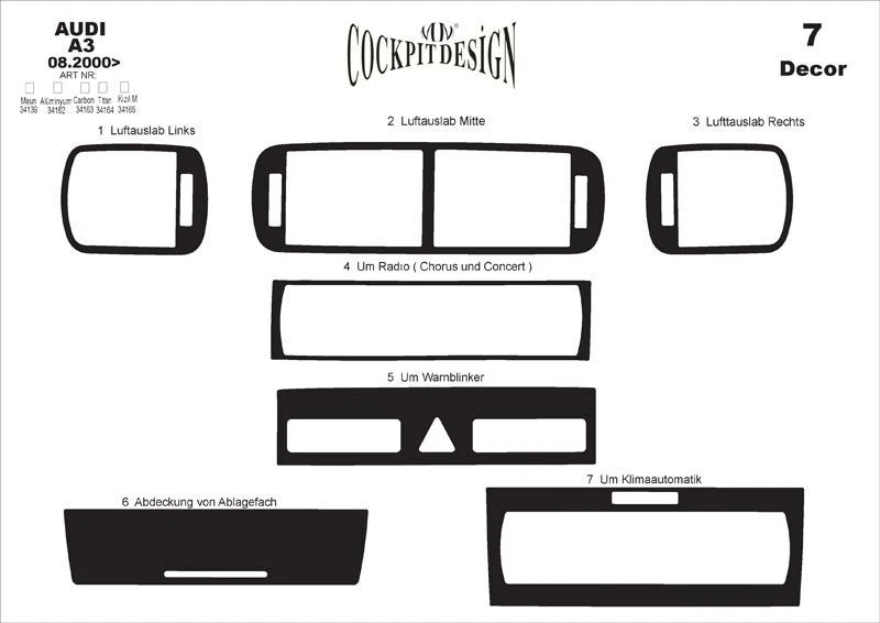 Накладки на панель (2000-2003) Титан Audi Audi A3 1996-2003 рр.Trend Tuning – це ваш надійний партнер у світі автотюнінгу та аксесуарів! Ми пропонуємо широкий асортимент високоякісних товарів для тих, хто прагне зробити свій автомобіль унікальним, стильним і функціональним. У нашому магазині ви знайдете все необхідне: від аеродинамічних обвісів, спортивних вихлопних систем і колісних дисків до внутрішніх аксесуарів, LED-освітлення та електроніки для підвищення комфорту та продуктивності.