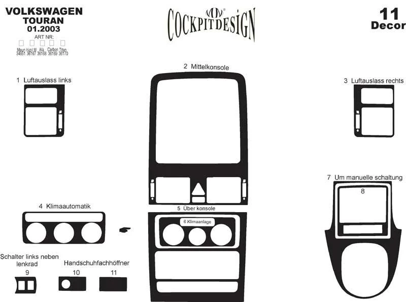 Накладки на панель Титан Volkswagen Volkswagen Touran 2003-2010 рр.Trend Tuning – це ваш надійний партнер у світі автотюнінгу та аксесуарів! Ми пропонуємо широкий асортимент високоякісних товарів для тих, хто прагне зробити свій автомобіль унікальним, стильним і функціональним. У нашому магазині ви знайдете все необхідне: від аеродинамічних обвісів, спортивних вихлопних систем і колісних дисків до внутрішніх аксесуарів, LED-освітлення та електроніки для підвищення комфорту та продуктивності.