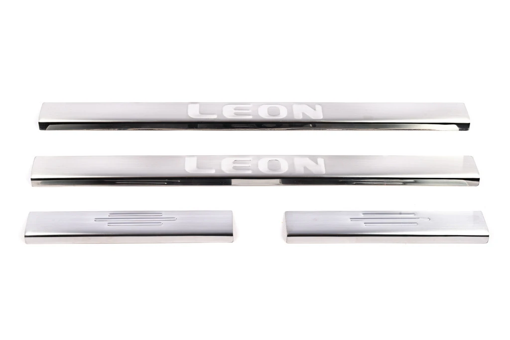 Накладки на пороги Carmos V1 (4 шт, нерж) Seat Seat Leon 2013-2020 рр.Trend Tuning – це ваш надійний партнер у світі автотюнінгу та аксесуарів! Ми пропонуємо широкий асортимент високоякісних товарів для тих, хто прагне зробити свій автомобіль унікальним, стильним і функціональним. У нашому магазині ви знайдете все необхідне: від аеродинамічних обвісів, спортивних вихлопних систем і колісних дисків до внутрішніх аксесуарів, LED-освітлення та електроніки для підвищення комфорту та продуктивності.