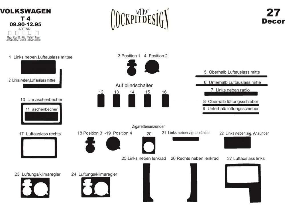 Накладки на торпеду (1991-1995) дерево Volkswagen Volkswagen T4 TransporterTrend Tuning – це ваш надійний партнер у світі автотюнінгу та аксесуарів! Ми пропонуємо широкий асортимент високоякісних товарів для тих, хто прагне зробити свій автомобіль унікальним, стильним і функціональним. У нашому магазині ви знайдете все необхідне: від аеродинамічних обвісів, спортивних вихлопних систем і колісних дисків до внутрішніх аксесуарів, LED-освітлення та електроніки для підвищення комфорту та продуктивності.