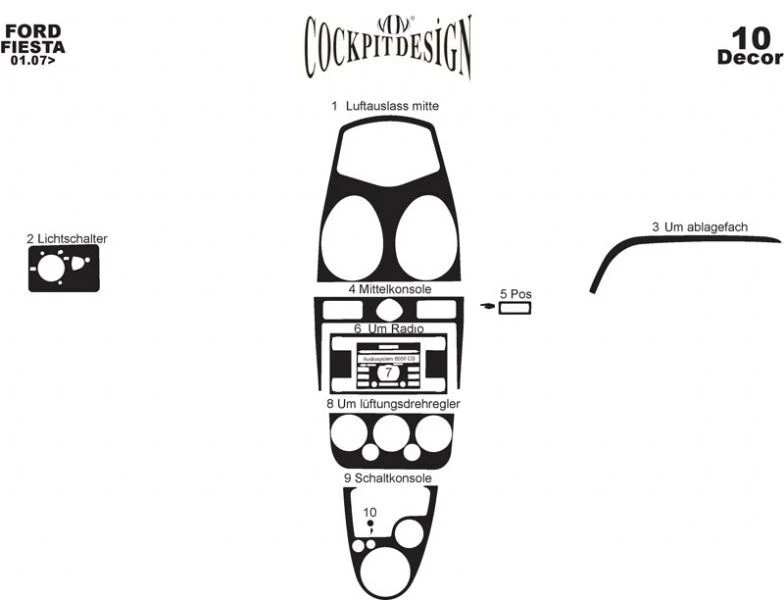 Накладки в салон (2005-2008) Алюміній Ford Ford Fiesta 2002-2008 рр.Trend Tuning – це ваш надійний партнер у світі автотюнінгу та аксесуарів! Ми пропонуємо широкий асортимент високоякісних товарів для тих, хто прагне зробити свій автомобіль унікальним, стильним і функціональним. У нашому магазині ви знайдете все необхідне: від аеродинамічних обвісів, спортивних вихлопних систем і колісних дисків до внутрішніх аксесуарів, LED-освітлення та електроніки для підвищення комфорту та продуктивності.