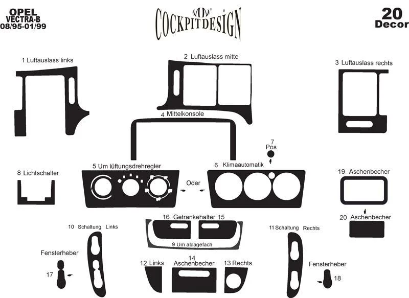 Пластикові накладки на панель (1995-1999) Алюміній Opel Opel Vectra B 1995-2002 рр.Trend Tuning – це ваш надійний партнер у світі автотюнінгу та аксесуарів! Ми пропонуємо широкий асортимент високоякісних товарів для тих, хто прагне зробити свій автомобіль унікальним, стильним і функціональним. У нашому магазині ви знайдете все необхідне: від аеродинамічних обвісів, спортивних вихлопних систем і колісних дисків до внутрішніх аксесуарів, LED-освітлення та електроніки для підвищення комфорту та продуктивності.