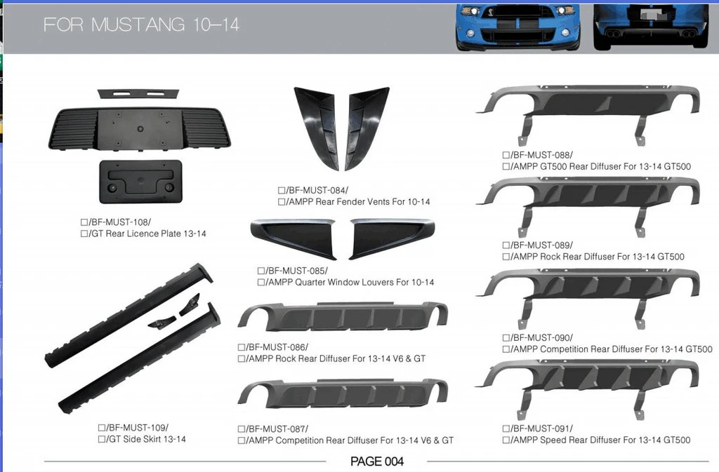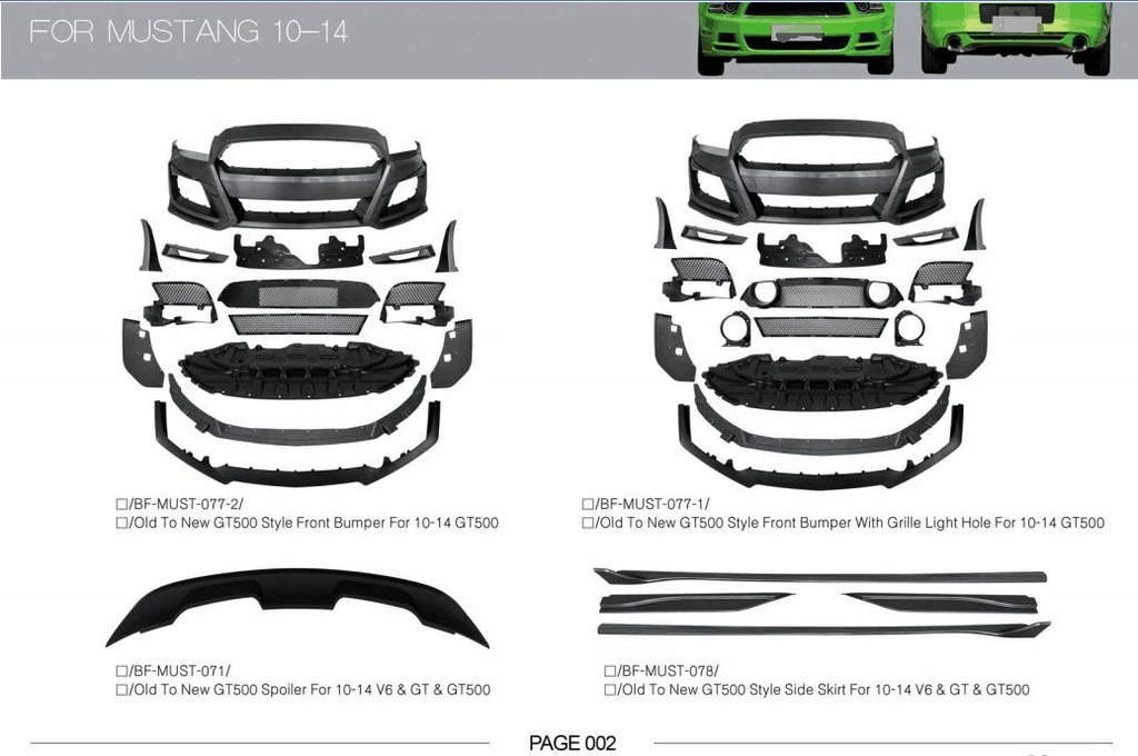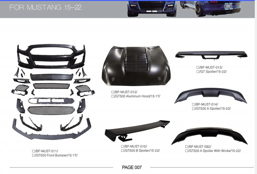 Комплект обвісів Ford Ford Mustang 2015-2023 рр.Trend Tuning – це ваш надійний партнер у світі автотюнінгу та аксесуарів! Ми пропонуємо широкий асортимент високоякісних товарів для тих, хто прагне зробити свій автомобіль унікальним, стильним і функціональним. У нашому магазині ви знайдете все необхідне: від аеродинамічних обвісів, спортивних вихлопних систем і колісних дисків до внутрішніх аксесуарів, LED-освітлення та електроніки для підвищення комфорту та продуктивності.