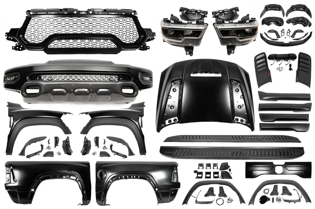 Комплект обвісів TRX Dodge Dodge RAMTrend Tuning – це ваш надійний партнер у світі автотюнінгу та аксесуарів! Ми пропонуємо широкий асортимент високоякісних товарів для тих, хто прагне зробити свій автомобіль унікальним, стильним і функціональним. У нашому магазині ви знайдете все необхідне: від аеродинамічних обвісів, спортивних вихлопних систем і колісних дисків до внутрішніх аксесуарів, LED-освітлення та електроніки для підвищення комфорту та продуктивності.