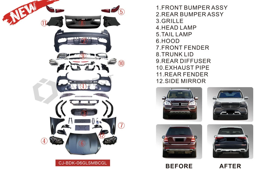 Комплект рестайлінгу в GLS X167 Maybach Mercedes Mercedes GL сlass X164Trend Tuning – це ваш надійний партнер у світі автотюнінгу та аксесуарів! Ми пропонуємо широкий асортимент високоякісних товарів для тих, хто прагне зробити свій автомобіль унікальним, стильним і функціональним. У нашому магазині ви знайдете все необхідне: від аеродинамічних обвісів, спортивних вихлопних систем і колісних дисків до внутрішніх аксесуарів, LED-освітлення та електроніки для підвищення комфорту та продуктивності.