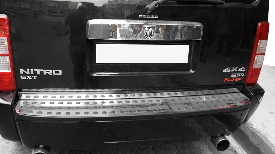 Накладка на задній бампер (нерж) Dodge Dodge Nitro 2007- рр.Trend Tuning – це ваш надійний партнер у світі автотюнінгу та аксесуарів! Ми пропонуємо широкий асортимент високоякісних товарів для тих, хто прагне зробити свій автомобіль унікальним, стильним і функціональним. У нашому магазині ви знайдете все необхідне: від аеродинамічних обвісів, спортивних вихлопних систем і колісних дисків до внутрішніх аксесуарів, LED-освітлення та електроніки для підвищення комфорту та продуктивності.