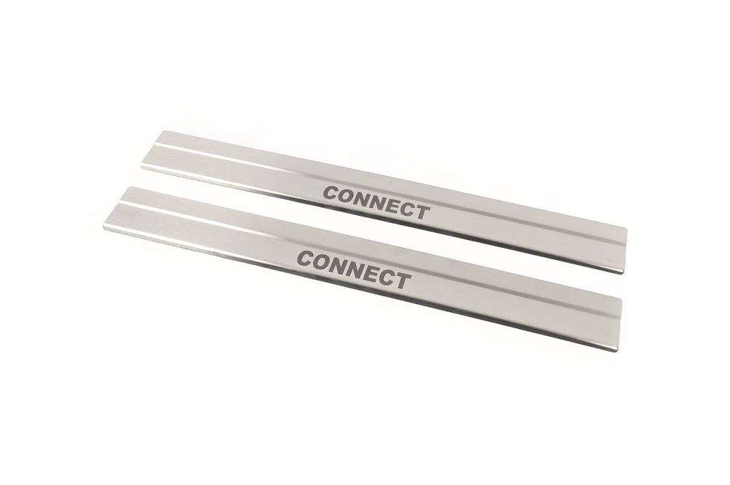 Накладки на дверні пороги Carmos (2 шт., нерж) Ford Ford Connect 2014-2021 рр.Trend Tuning – це ваш надійний партнер у світі автотюнінгу та аксесуарів! Ми пропонуємо широкий асортимент високоякісних товарів для тих, хто прагне зробити свій автомобіль унікальним, стильним і функціональним. У нашому магазині ви знайдете все необхідне: від аеродинамічних обвісів, спортивних вихлопних систем і колісних дисків до внутрішніх аксесуарів, LED-освітлення та електроніки для підвищення комфорту та продуктивності.