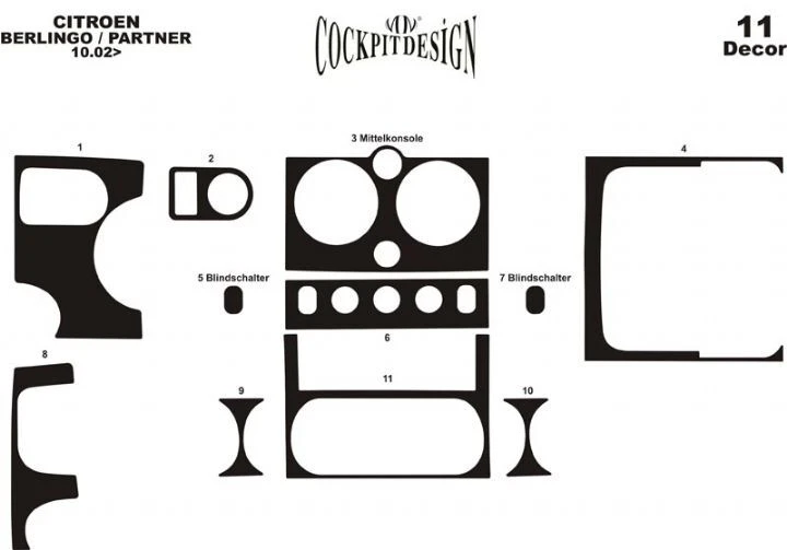 Накладки на панель (2002-2008) Дерево Citroen Citroen Berlingo 1996-2008 рр.Trend Tuning – це ваш надійний партнер у світі автотюнінгу та аксесуарів! Ми пропонуємо широкий асортимент високоякісних товарів для тих, хто прагне зробити свій автомобіль унікальним, стильним і функціональним. У нашому магазині ви знайдете все необхідне: від аеродинамічних обвісів, спортивних вихлопних систем і колісних дисків до внутрішніх аксесуарів, LED-освітлення та електроніки для підвищення комфорту та продуктивності.