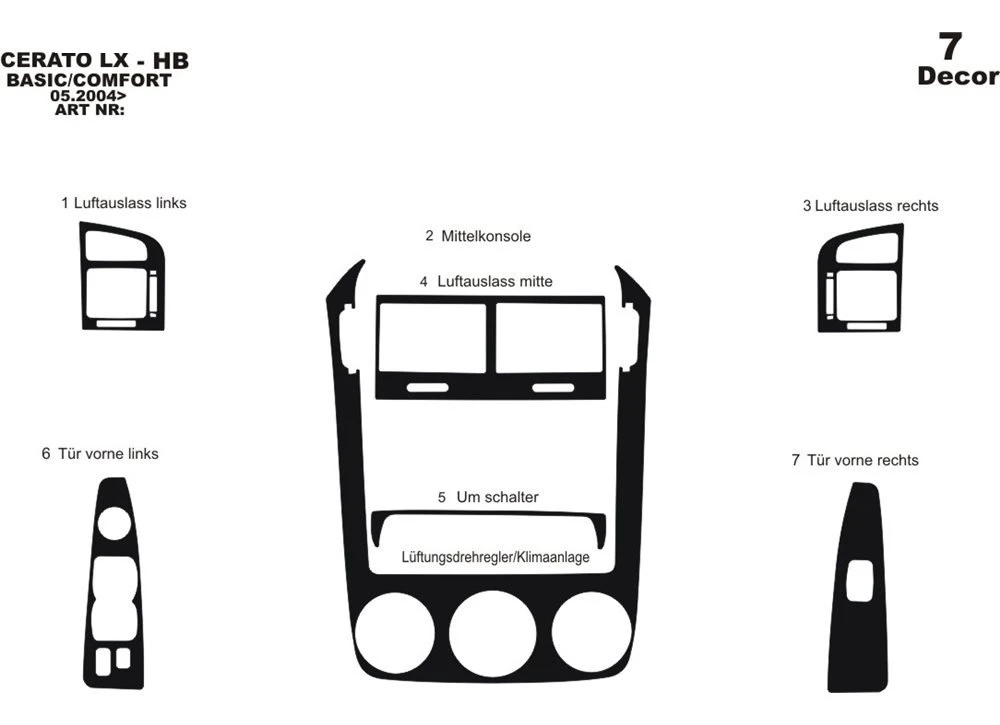 Накладки на панель 2004-2006 (HB) Алюміній KIA Kia Cerato 1 2004-2009 рр.Trend Tuning – це ваш надійний партнер у світі автотюнінгу та аксесуарів! Ми пропонуємо широкий асортимент високоякісних товарів для тих, хто прагне зробити свій автомобіль унікальним, стильним і функціональним. У нашому магазині ви знайдете все необхідне: від аеродинамічних обвісів, спортивних вихлопних систем і колісних дисків до внутрішніх аксесуарів, LED-освітлення та електроніки для підвищення комфорту та продуктивності.