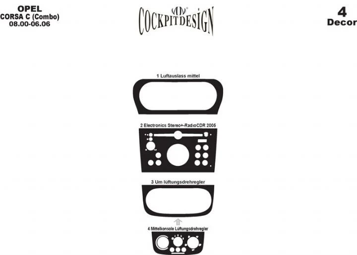 Накладки на панель Дерево Opel Opel Corsa C 2000- рр.Trend Tuning – це ваш надійний партнер у світі автотюнінгу та аксесуарів! Ми пропонуємо широкий асортимент високоякісних товарів для тих, хто прагне зробити свій автомобіль унікальним, стильним і функціональним. У нашому магазині ви знайдете все необхідне: від аеродинамічних обвісів, спортивних вихлопних систем і колісних дисків до внутрішніх аксесуарів, LED-освітлення та електроніки для підвищення комфорту та продуктивності.