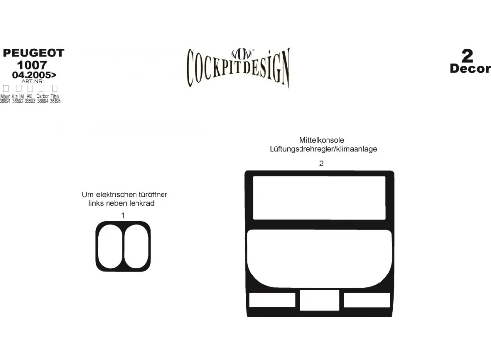 Накладки на панель Дерево Peugeot Peugeot 1007Trend Tuning – це ваш надійний партнер у світі автотюнінгу та аксесуарів! Ми пропонуємо широкий асортимент високоякісних товарів для тих, хто прагне зробити свій автомобіль унікальним, стильним і функціональним. У нашому магазині ви знайдете все необхідне: від аеродинамічних обвісів, спортивних вихлопних систем і колісних дисків до внутрішніх аксесуарів, LED-освітлення та електроніки для підвищення комфорту та продуктивності.