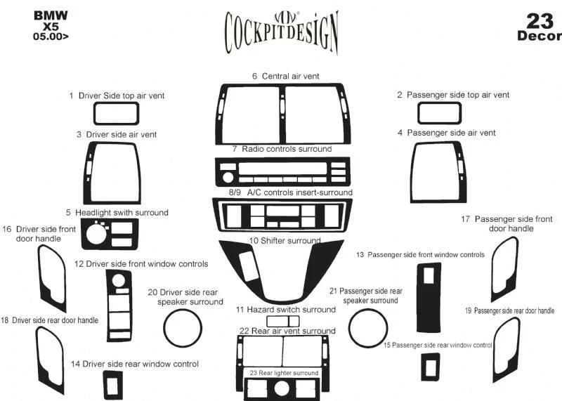 Накладки на панель V-1 Карбон BMW BMW X5 E-53 1999-2006 рр.Trend Tuning – це ваш надійний партнер у світі автотюнінгу та аксесуарів! Ми пропонуємо широкий асортимент високоякісних товарів для тих, хто прагне зробити свій автомобіль унікальним, стильним і функціональним. У нашому магазині ви знайдете все необхідне: від аеродинамічних обвісів, спортивних вихлопних систем і колісних дисків до внутрішніх аксесуарів, LED-освітлення та електроніки для підвищення комфорту та продуктивності.