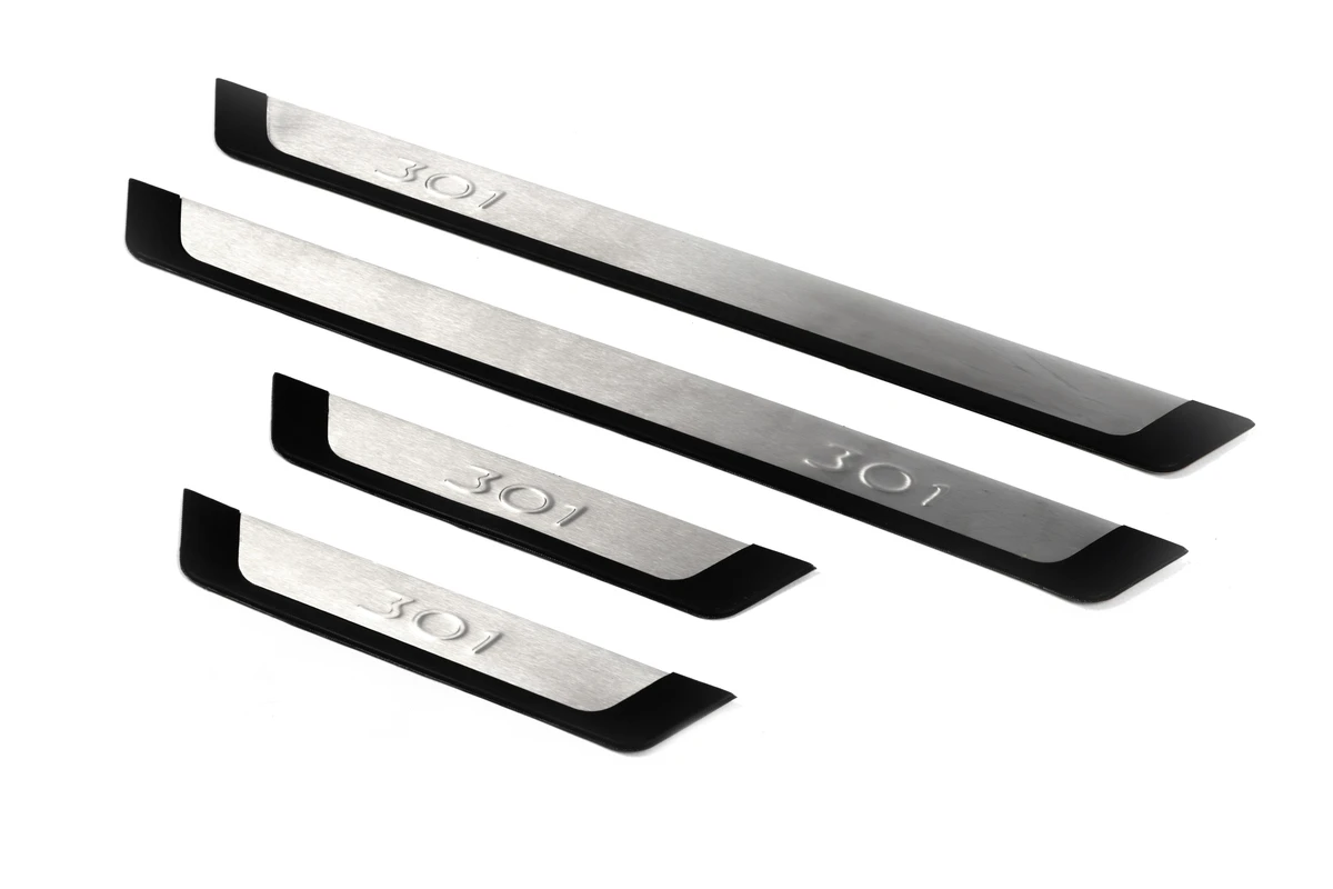 Накладки на пороги Flexill (4 шт, нерж) Peugeot Peugeot 301Trend Tuning – це ваш надійний партнер у світі автотюнінгу та аксесуарів! Ми пропонуємо широкий асортимент високоякісних товарів для тих, хто прагне зробити свій автомобіль унікальним, стильним і функціональним. У нашому магазині ви знайдете все необхідне: від аеродинамічних обвісів, спортивних вихлопних систем і колісних дисків до внутрішніх аксесуарів, LED-освітлення та електроніки для підвищення комфорту та продуктивності.