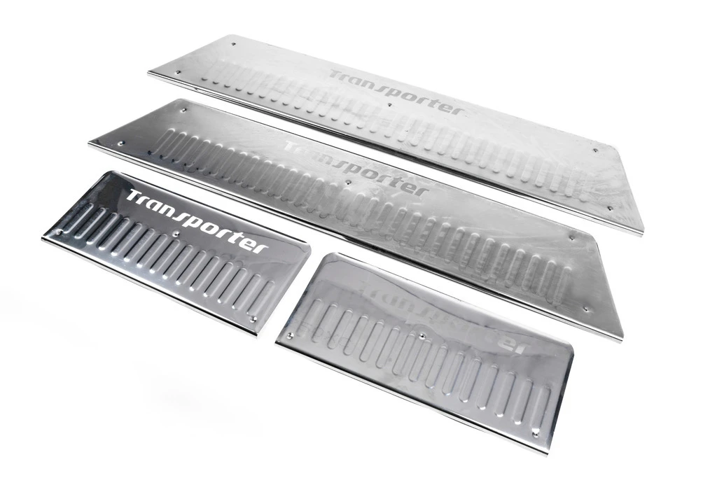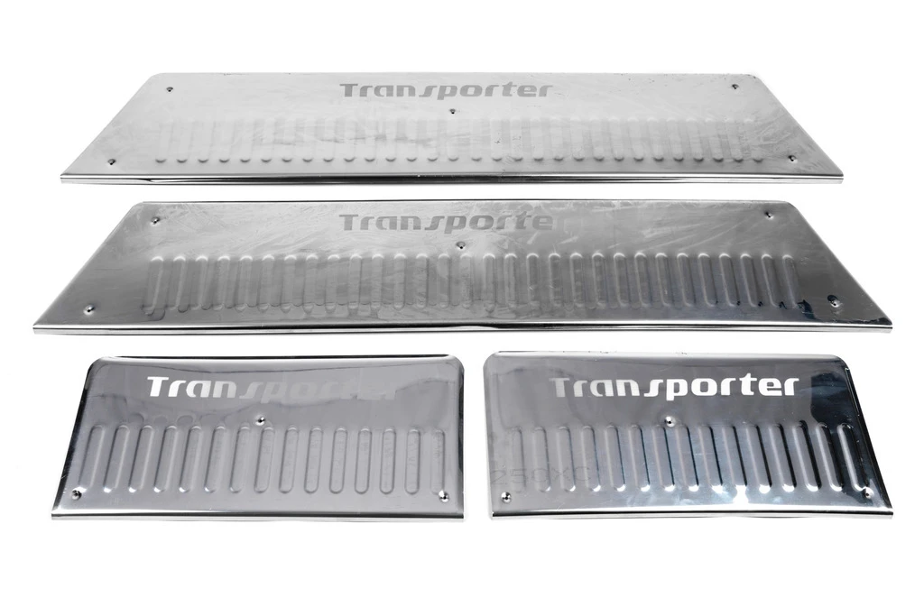 Накладки на внутрішні пороги (Carmos, сталь) 4 двері, без напису Volkswagen Volkswagen T5 Transporter 2003-2010 рр.Trend Tuning – це ваш надійний партнер у світі автотюнінгу та аксесуарів! Ми пропонуємо широкий асортимент високоякісних товарів для тих, хто прагне зробити свій автомобіль унікальним, стильним і функціональним. У нашому магазині ви знайдете все необхідне: від аеродинамічних обвісів, спортивних вихлопних систем і колісних дисків до внутрішніх аксесуарів, LED-освітлення та електроніки для підвищення комфорту та продуктивності.