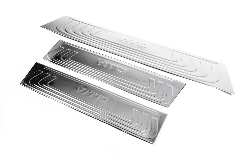 Накладки на внутрішні пороги OmsaLine (3 шт, нерж) Mercedes Mercedes Vito / V-class W447 2014- рр.Trend Tuning – це ваш надійний партнер у світі автотюнінгу та аксесуарів! Ми пропонуємо широкий асортимент високоякісних товарів для тих, хто прагне зробити свій автомобіль унікальним, стильним і функціональним. У нашому магазині ви знайдете все необхідне: від аеродинамічних обвісів, спортивних вихлопних систем і колісних дисків до внутрішніх аксесуарів, LED-освітлення та електроніки для підвищення комфорту та продуктивності.