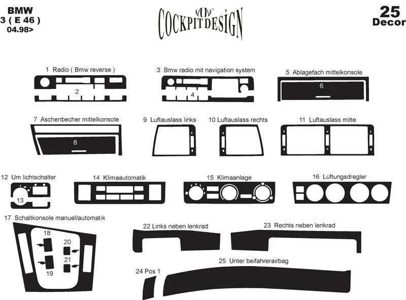Накладки в салон Алюміній BMW BMW 3 серія E-46 1998-2006 рр.Trend Tuning – це ваш надійний партнер у світі автотюнінгу та аксесуарів! Ми пропонуємо широкий асортимент високоякісних товарів для тих, хто прагне зробити свій автомобіль унікальним, стильним і функціональним. У нашому магазині ви знайдете все необхідне: від аеродинамічних обвісів, спортивних вихлопних систем і колісних дисків до внутрішніх аксесуарів, LED-освітлення та електроніки для підвищення комфорту та продуктивності.