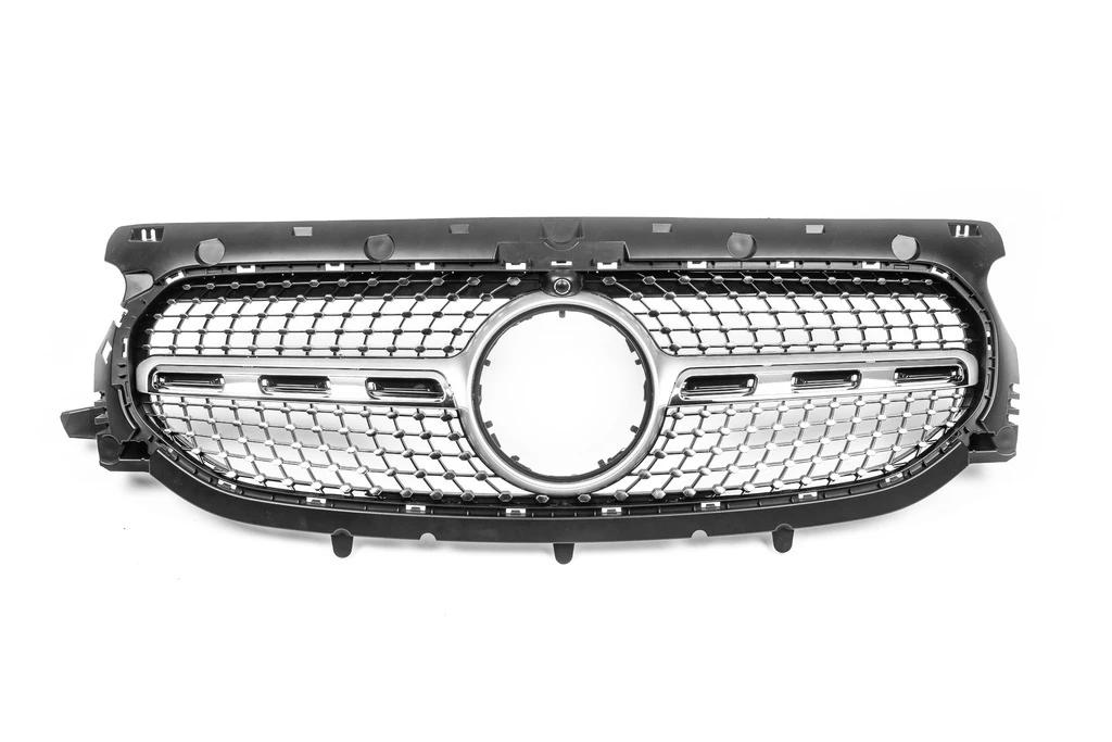 Передня решітка Diamond Silver Без місця під камеру Mercedes Mercedes GLA H247 2020- рр.Trend Tuning – це ваш надійний партнер у світі автотюнінгу та аксесуарів! Ми пропонуємо широкий асортимент високоякісних товарів для тих, хто прагне зробити свій автомобіль унікальним, стильним і функціональним. У нашому магазині ви знайдете все необхідне: від аеродинамічних обвісів, спортивних вихлопних систем і колісних дисків до внутрішніх аксесуарів, LED-освітлення та електроніки для підвищення комфорту та продуктивності.