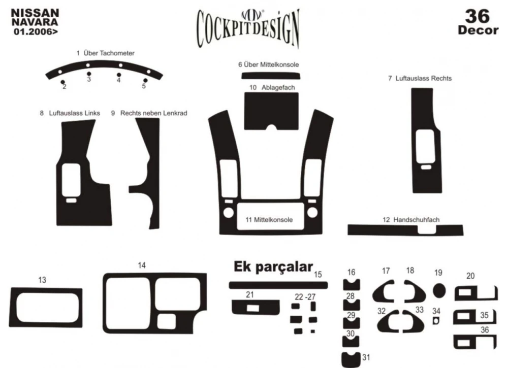 Тюнінг салону (36 деталей) Алюміній Nissan Nissan Navara 2006-2015 рр.Trend Tuning – це ваш надійний партнер у світі автотюнінгу та аксесуарів! Ми пропонуємо широкий асортимент високоякісних товарів для тих, хто прагне зробити свій автомобіль унікальним, стильним і функціональним. У нашому магазині ви знайдете все необхідне: від аеродинамічних обвісів, спортивних вихлопних систем і колісних дисків до внутрішніх аксесуарів, LED-освітлення та електроніки для підвищення комфорту та продуктивності.